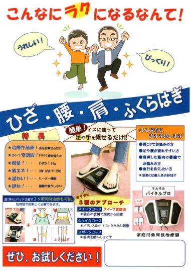『低周波治療器 マルタカのバイタルプロ』のお試し体験会も実施いたします